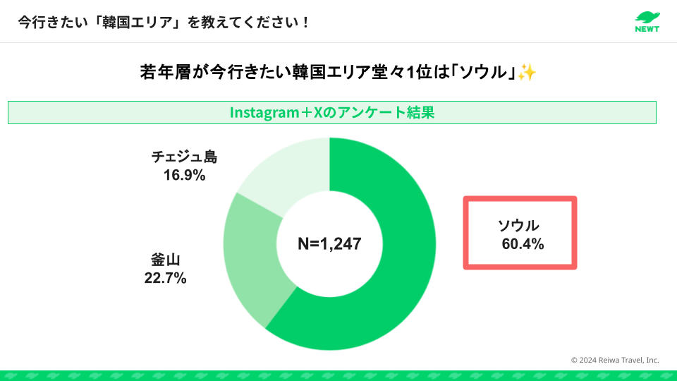 ◾️若年層が今行きたい韓国エリア、堂々の1位は「ソウル」