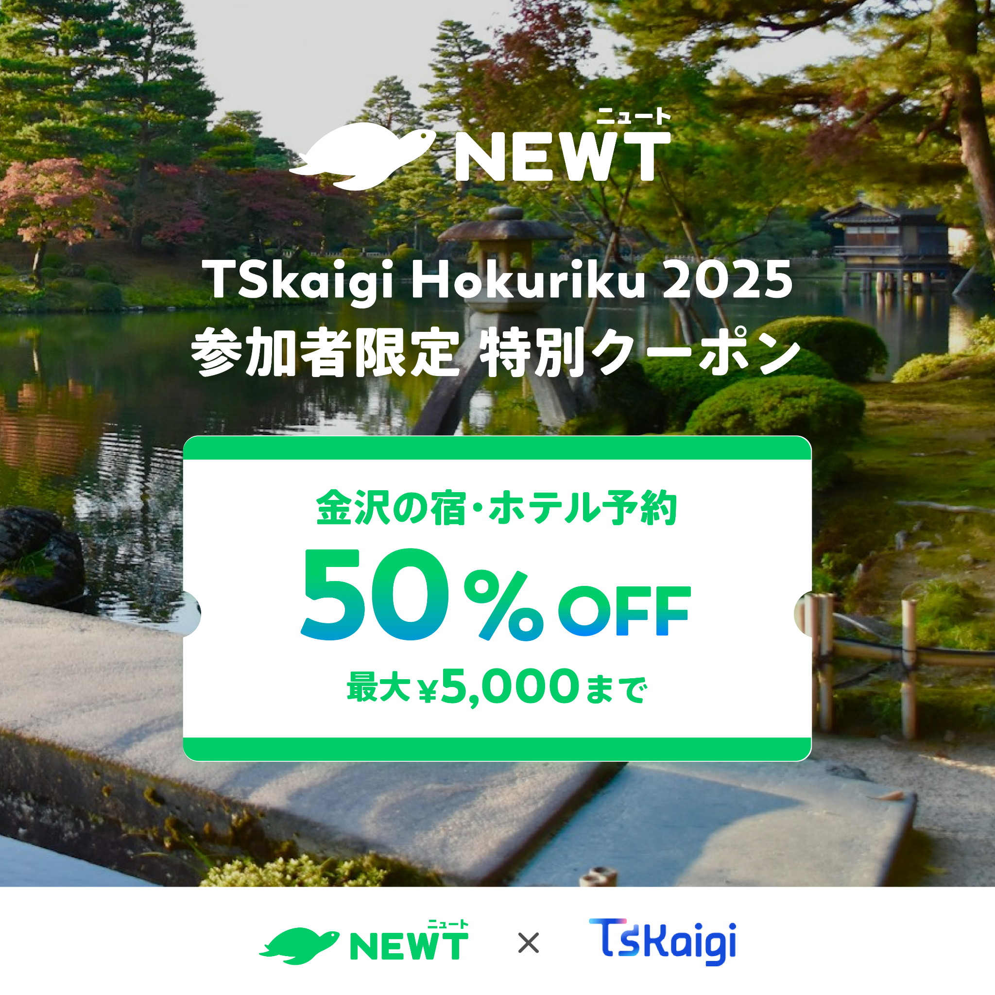 かしこい、おトク、旅行アプリ『NEWT(ニュート)』は、2025年11月23日(日)に石川県・ホテル金沢にて開催される「TSKaigi Hokuriku 2025」に、“旅で応援する”トラベルスポンサーとして協賛いたします。