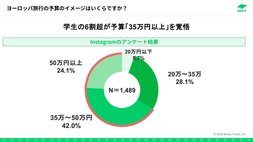 ・【予 算】ヨーロッパ旅行の予算イメージは「35〜50万円」が最多。6割超が35万円以上を覚悟