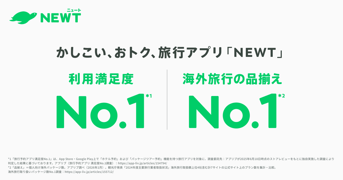 かしこい、おトク、旅行アプリ『NEWT(ニュート)』は、2026年4月5日にサービス開始4周年を迎えました。